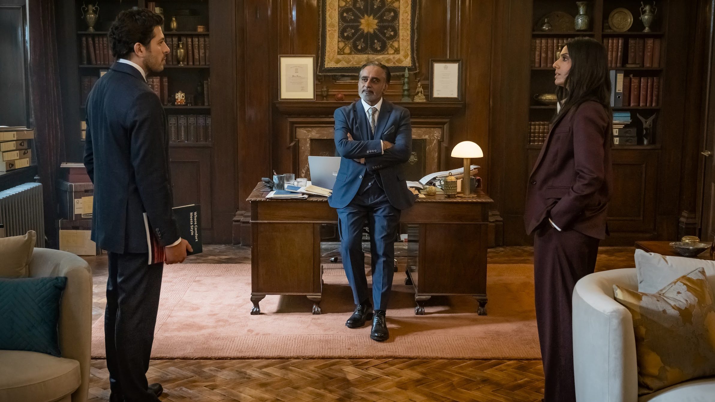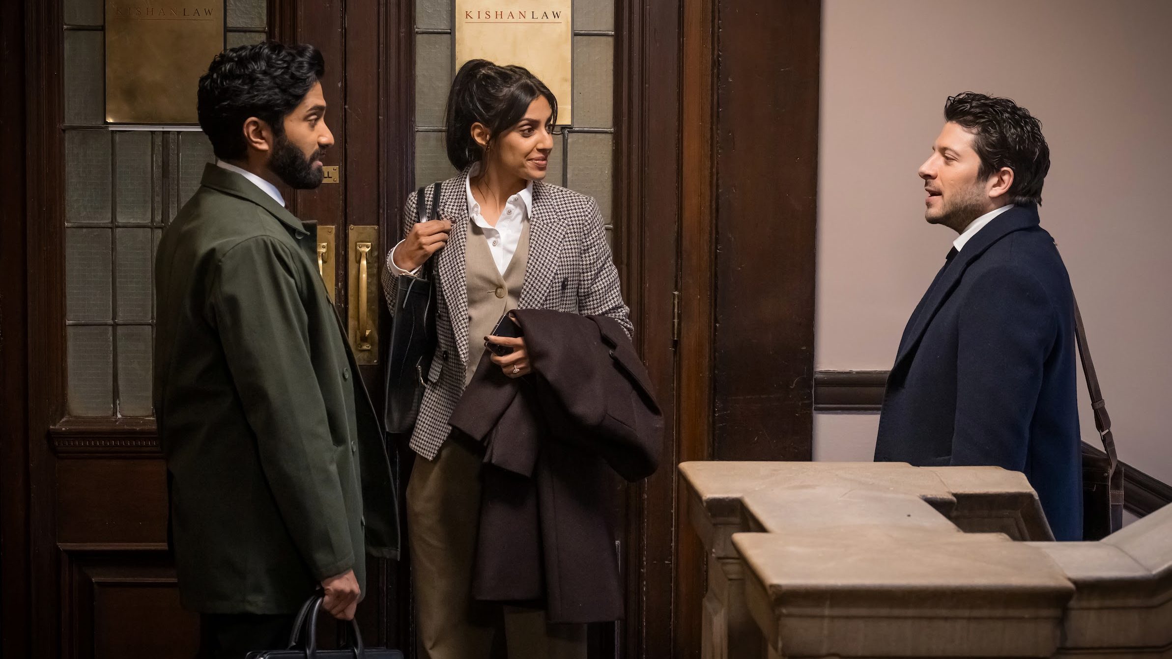 The first-look pictures revealed on Thursday provides a first glimpse at “the Kishan Law family, a powerhouse British-South Asian family firm, and the go-to for the city’s elite,” according to the BBC. “At its center is Ritu Arya as Aria Kishan, a fast-rising star of Kishan Law, poised to step up and take the mantle from her father Dhruv (Bhaskar) and Aria’s siblings Maya (Kala), Kav (Nik), and partner Neal (Ashok).”