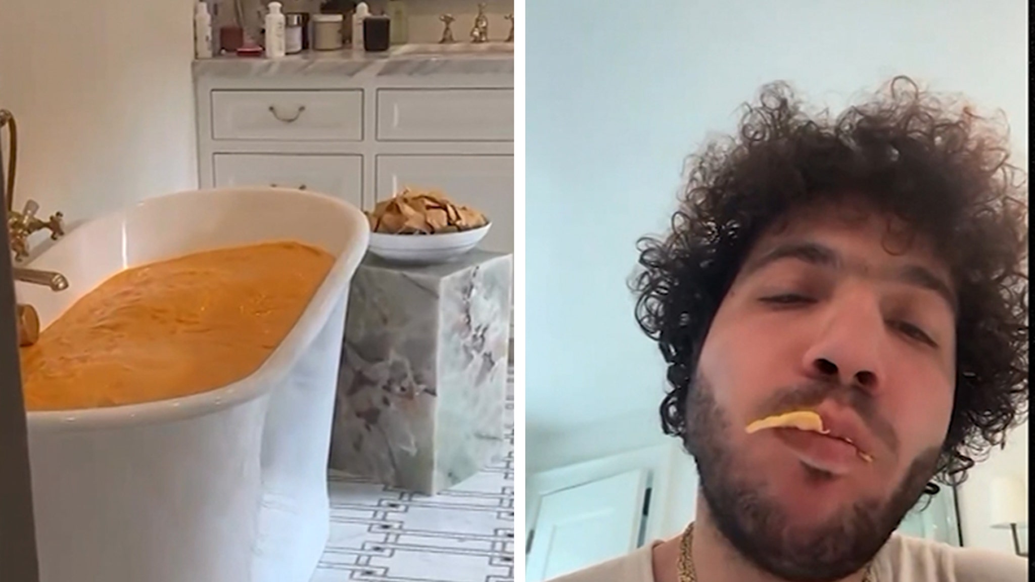 Benny Blanco says his fiancé Selena Gomez isn’t too big on flowers … so he got her the next best thing for Valentine’s Day … a bathtub filled with cheese!!!