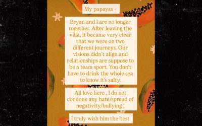 Getty UPDATE 3:32 PM PT — Bryan Arenales posted his own statement on the breakup, stating basically the same reasoning for the split as his former winning costar — adding that he wishes her the best. However, Amaya Espinal took to a TikTok comment section … revealing Bryan had been the one to break things…