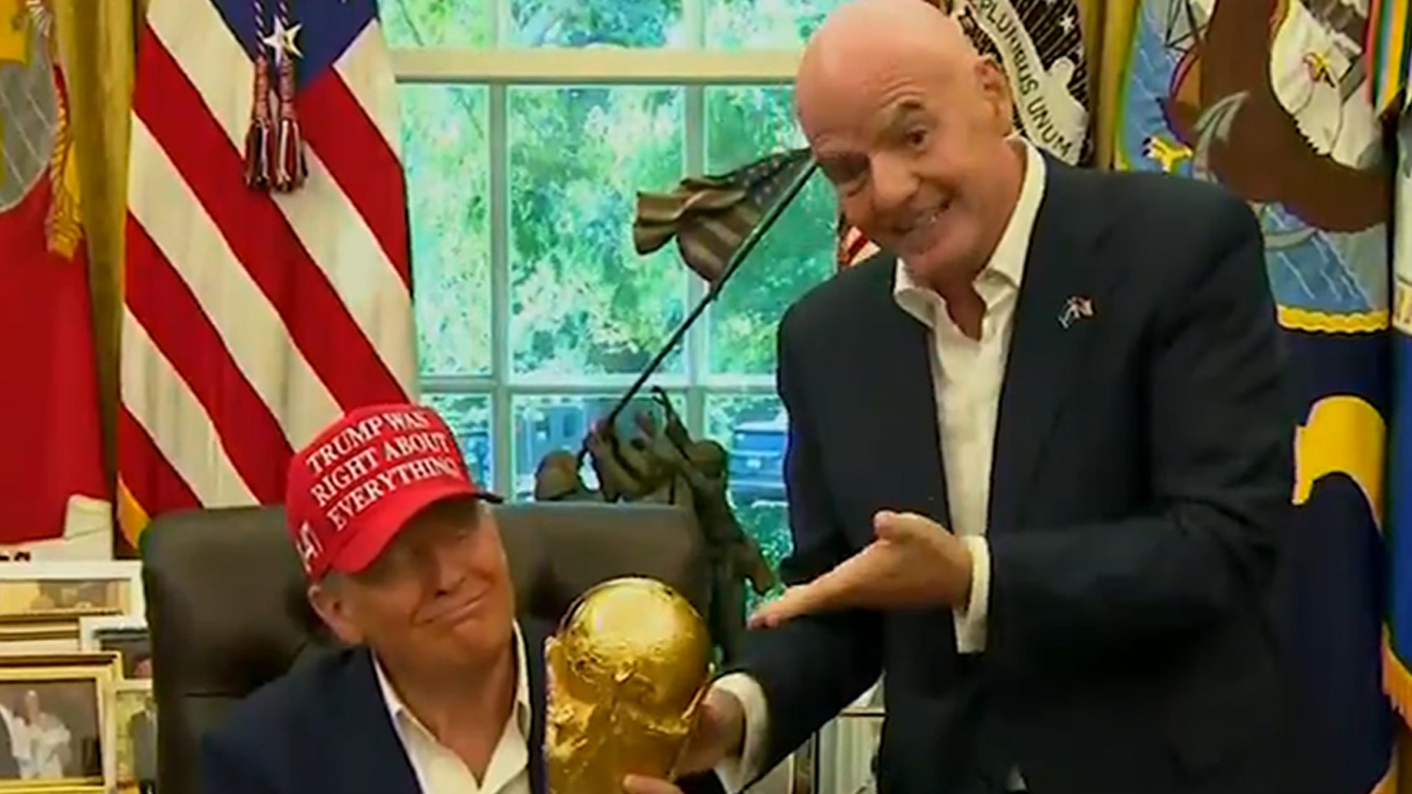Infantino brought the beloved trophy with him to 1600 Penn … and handed it to POTUS, saying it’s “only for winners.”