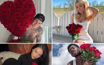 Perry and Bloom get engaged on Valentine’s Day. She debuted her ring—a flower-shaped cluster with a deep red center stone—on Instagram with the caption, “Full bloom.”