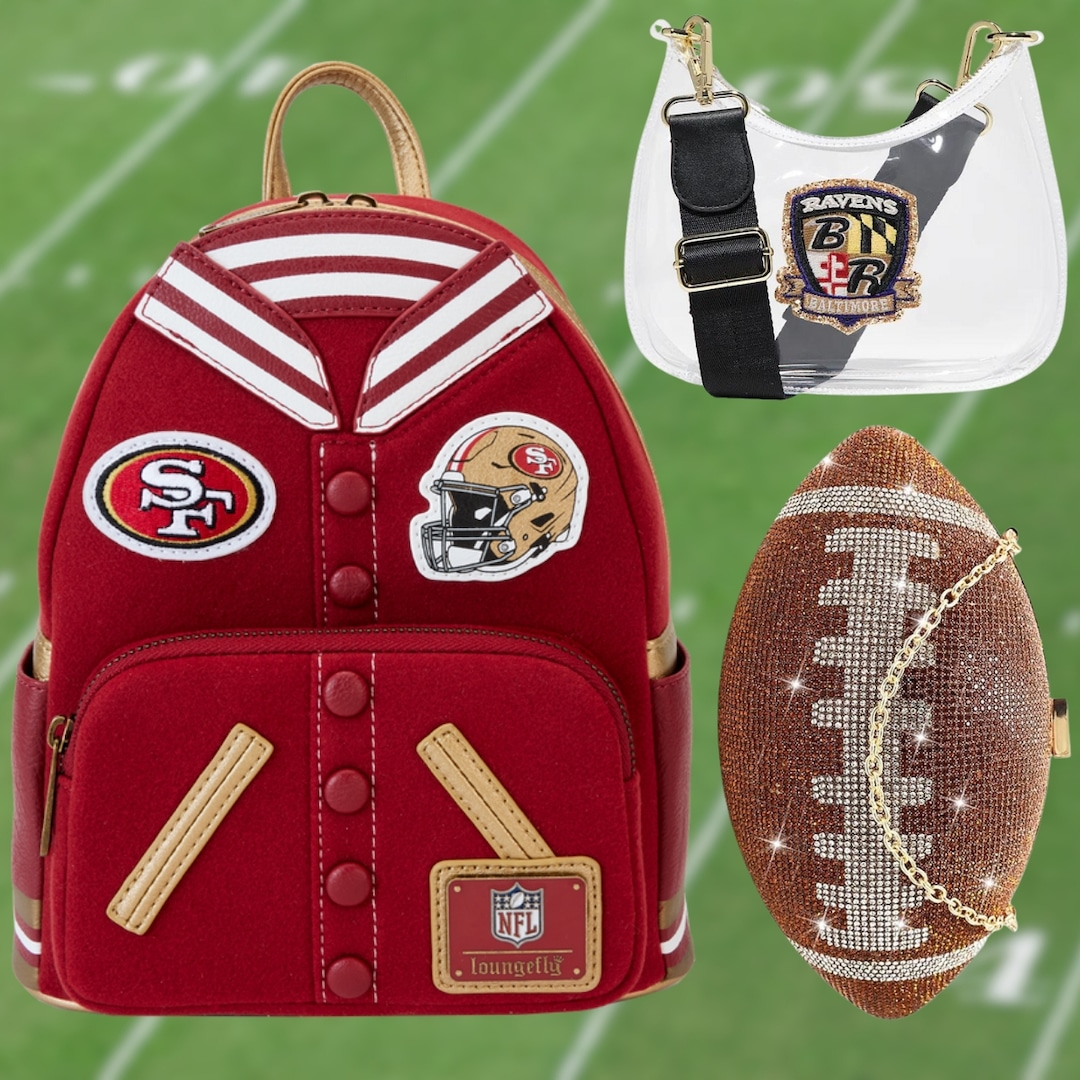 Shop NFL Bags - hero imagesE! News Illustration / Photos Courtesy of Amazon, Loungefly, NFL Shop, Getty Images – David Madison