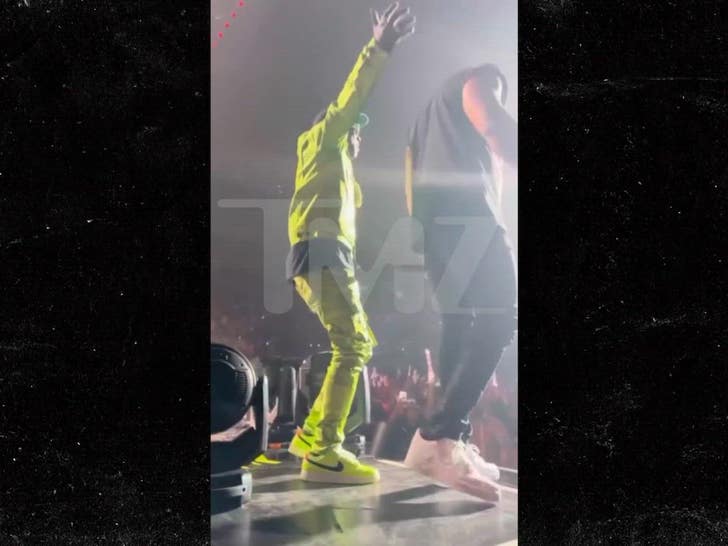 Gold medalist Alex Yee of Team Great Britain and silver medalist Hayden Wilde of Team New Zealand share a subtle celebratory moment after crossing the finish line.